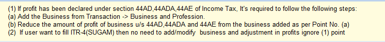 Flow for Entering Information under Section 44AD, 44AE, and 44ADA for ITR-4 Filing When filing ITR-4 for presumptive income under Sections 44AD, 44AE, or 44ADA, follow these steps to ensure all mandatory details are entered accurately in the ...