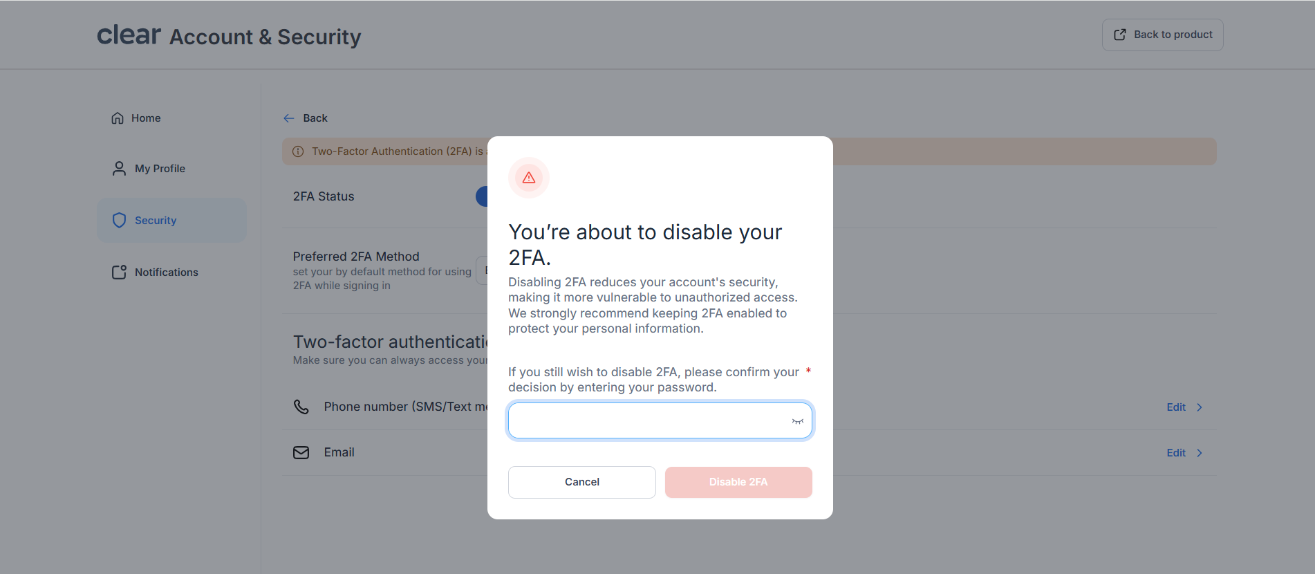 - Disable the 2FA toggle.