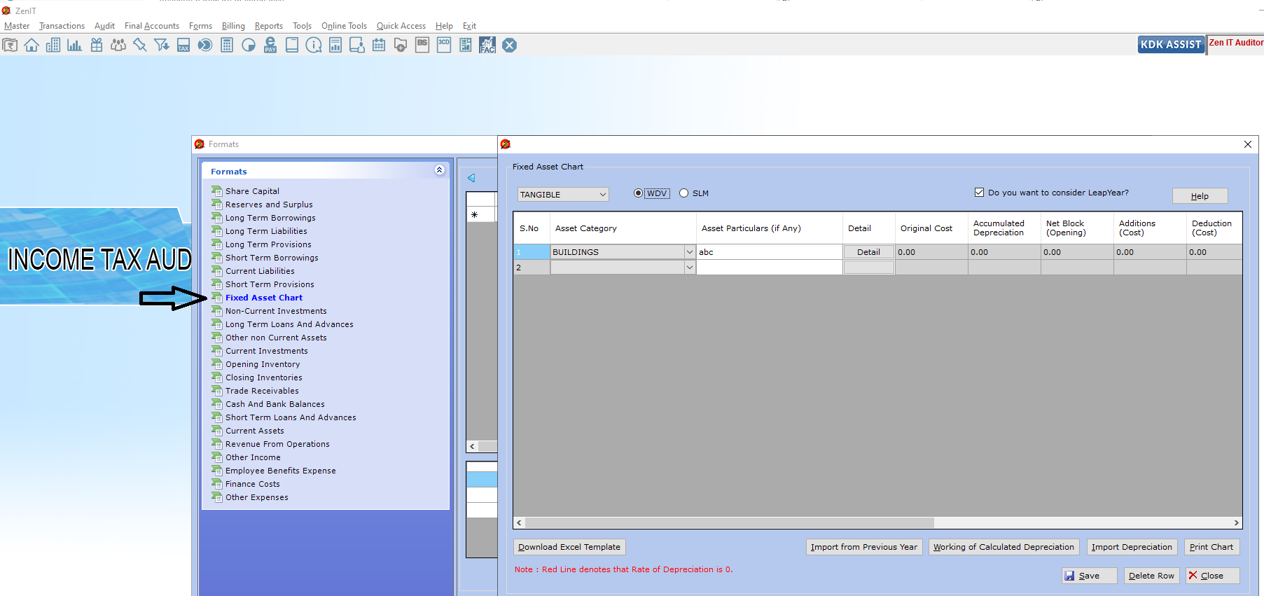 ZenIT || Depreciation chart (Businee and Profession) - data not importing through balance sheet (Formats)