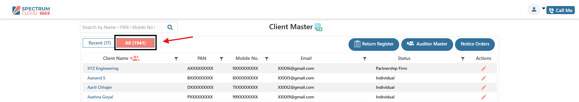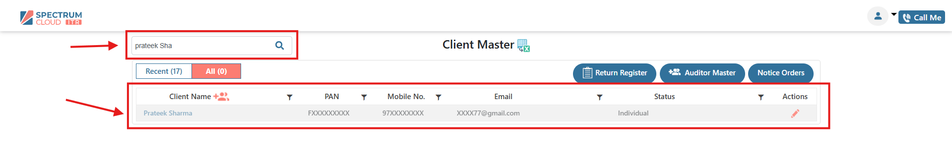 - Search for the client using their Name, PAN, Mobile Number, or Email ID.
