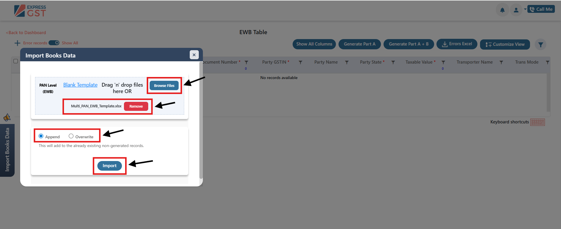 - E-Way Bill Generation: Generate E-Way Bills with Part A or Part A + Part B details, supporting both single and bulk generation of records.
