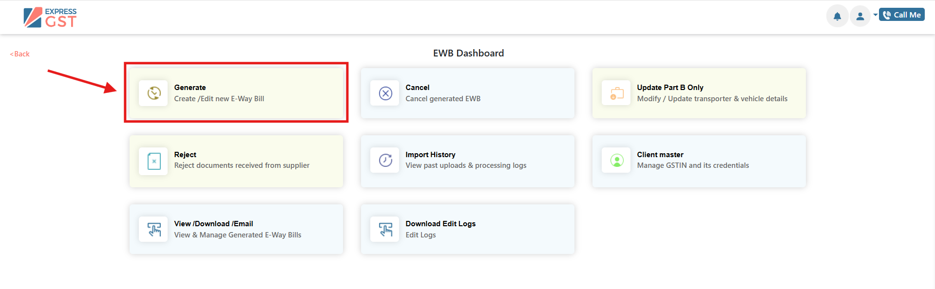 - Navigate to EWB Generation.