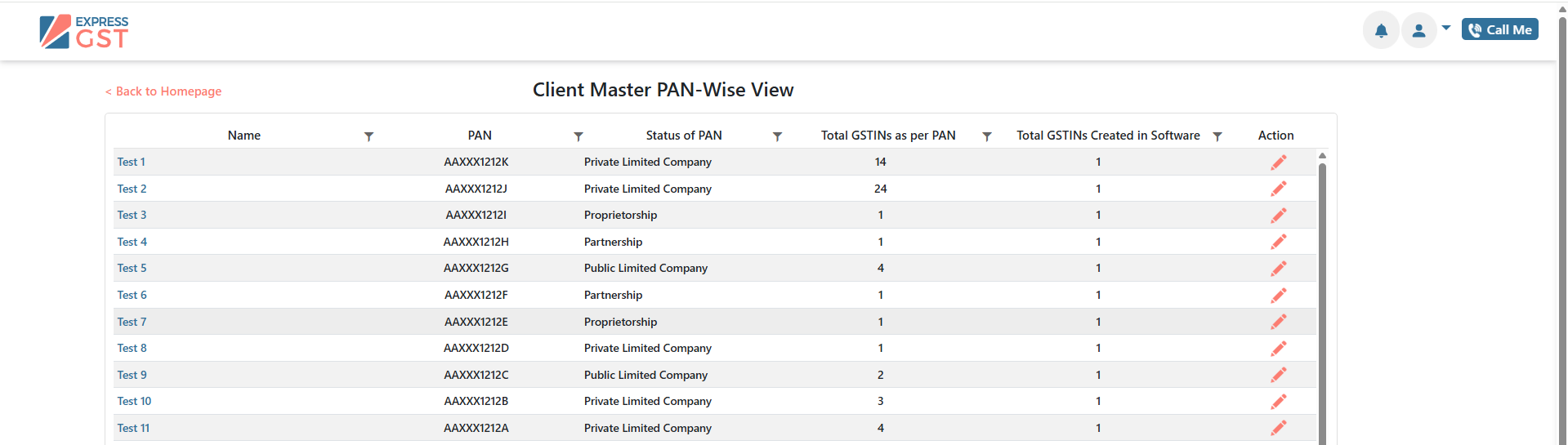 Accessing PAN View : Navigate to the PAN View section within the application to view the status of companies based on their PAN.