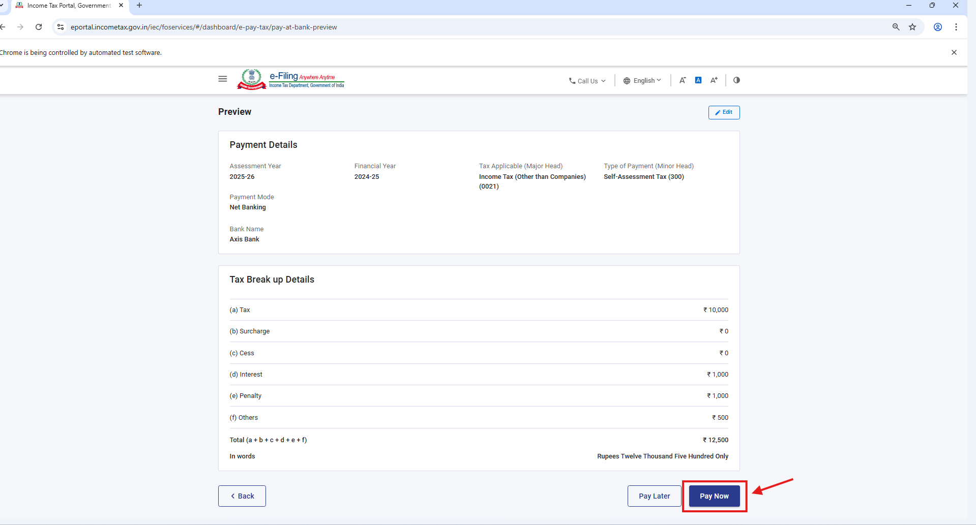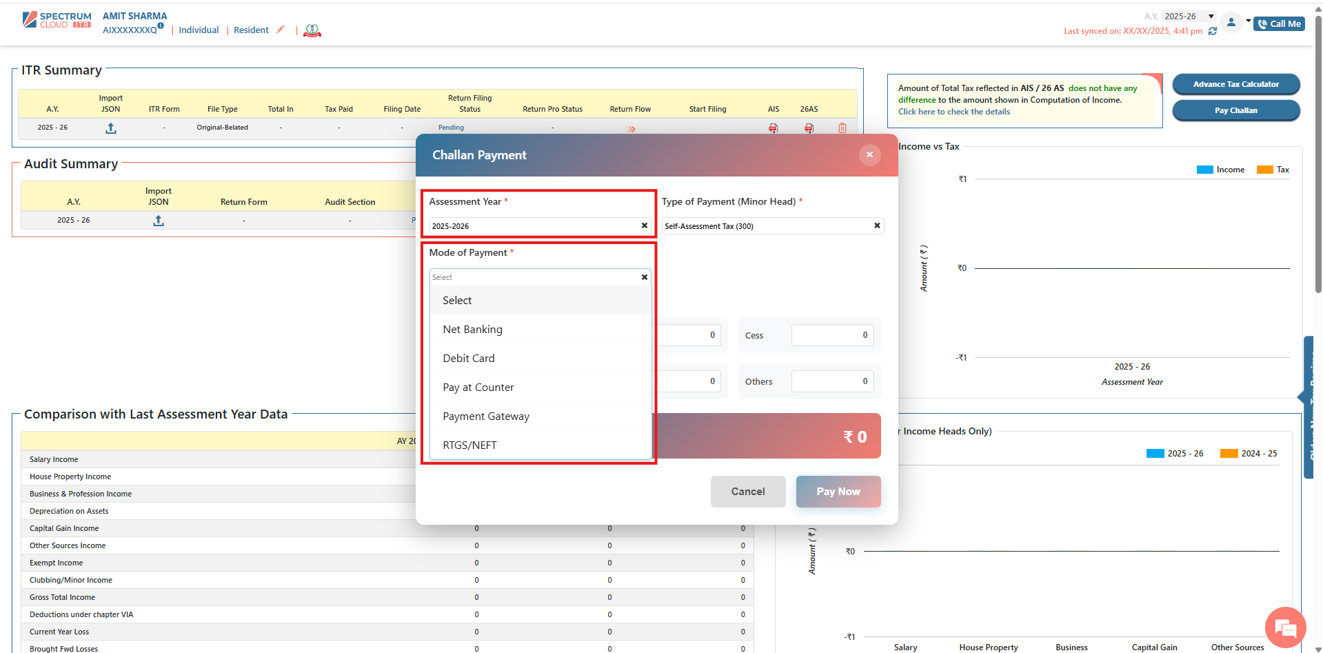 Step 2: Enter Assessment Year and Select Mode of Payment