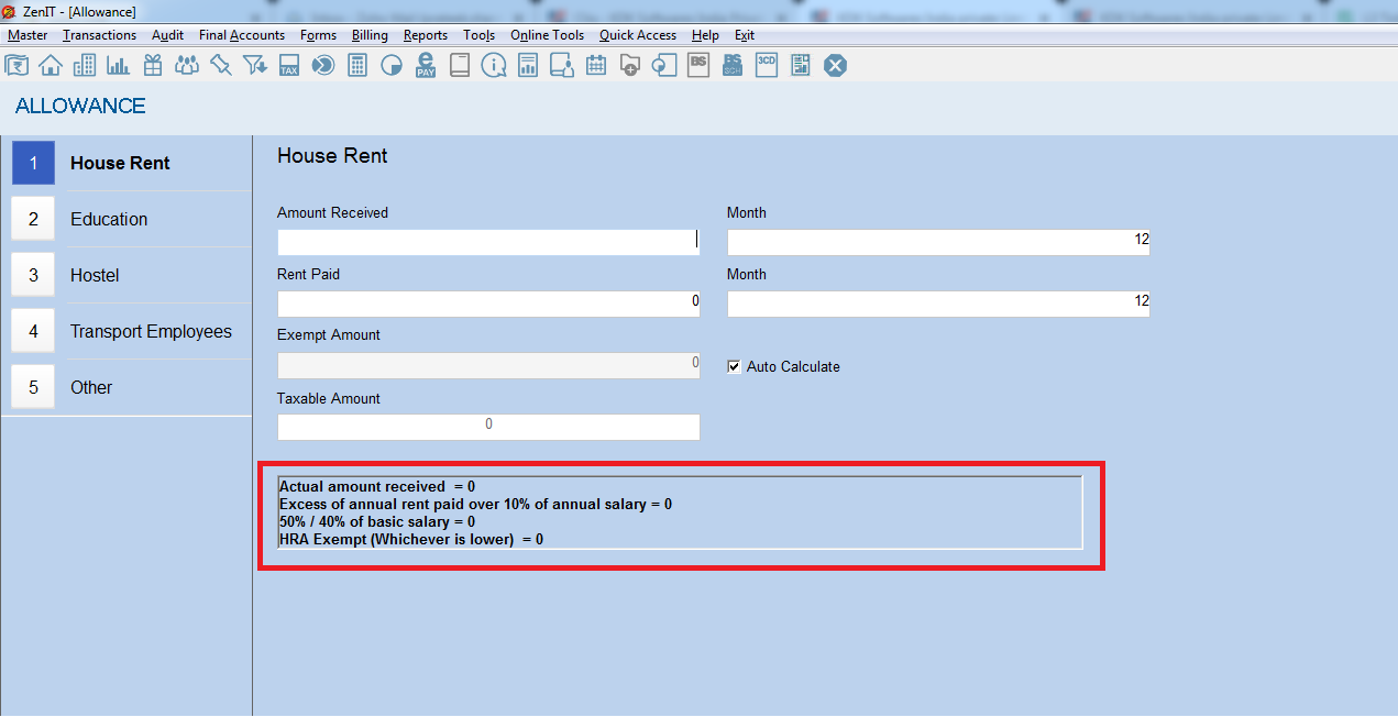 Zen IT || Process for Entering and Calculating Deduction under Section 80GG