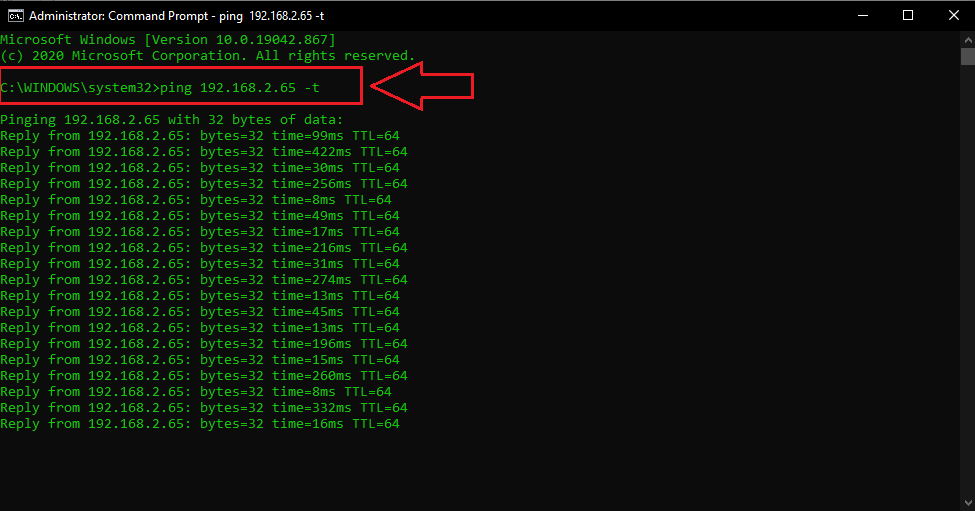- If you Ping the computer / System regularly (N time), then Type "ping <ip address of target machine> -t".