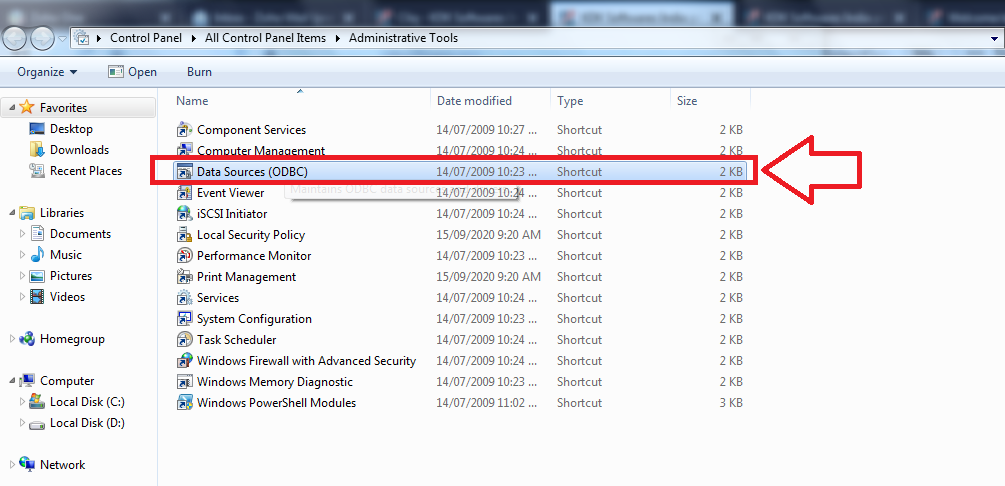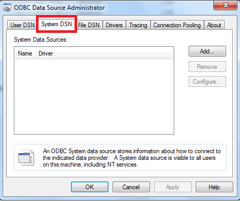 Open Control Panel > Administrative Tools > Data Sources (ODBC)