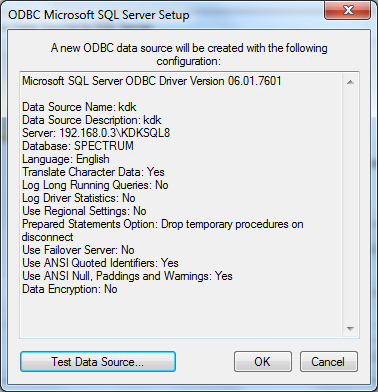 Here, ODBC Microsoft SQL Server Setup is opened, Click on Test Data Source...