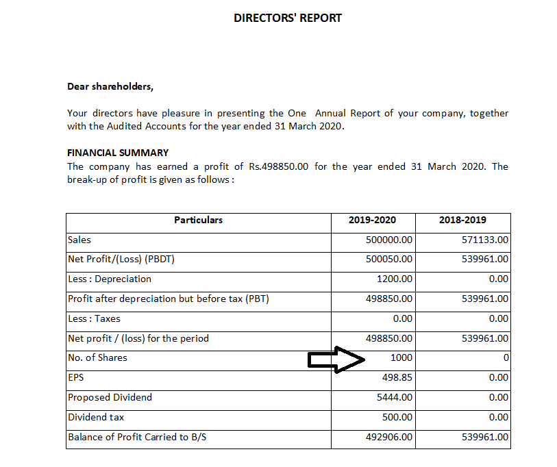 How to enter "No of Shares" In Directors Report: