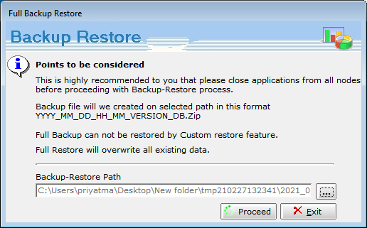Whenever the user wants to format the system or change his system to other, there would be requirement to take proper data backup of the software so that the data is not lost. eXBace SAAS: Please note that you cannot take data backup of Exbace SAAS ...