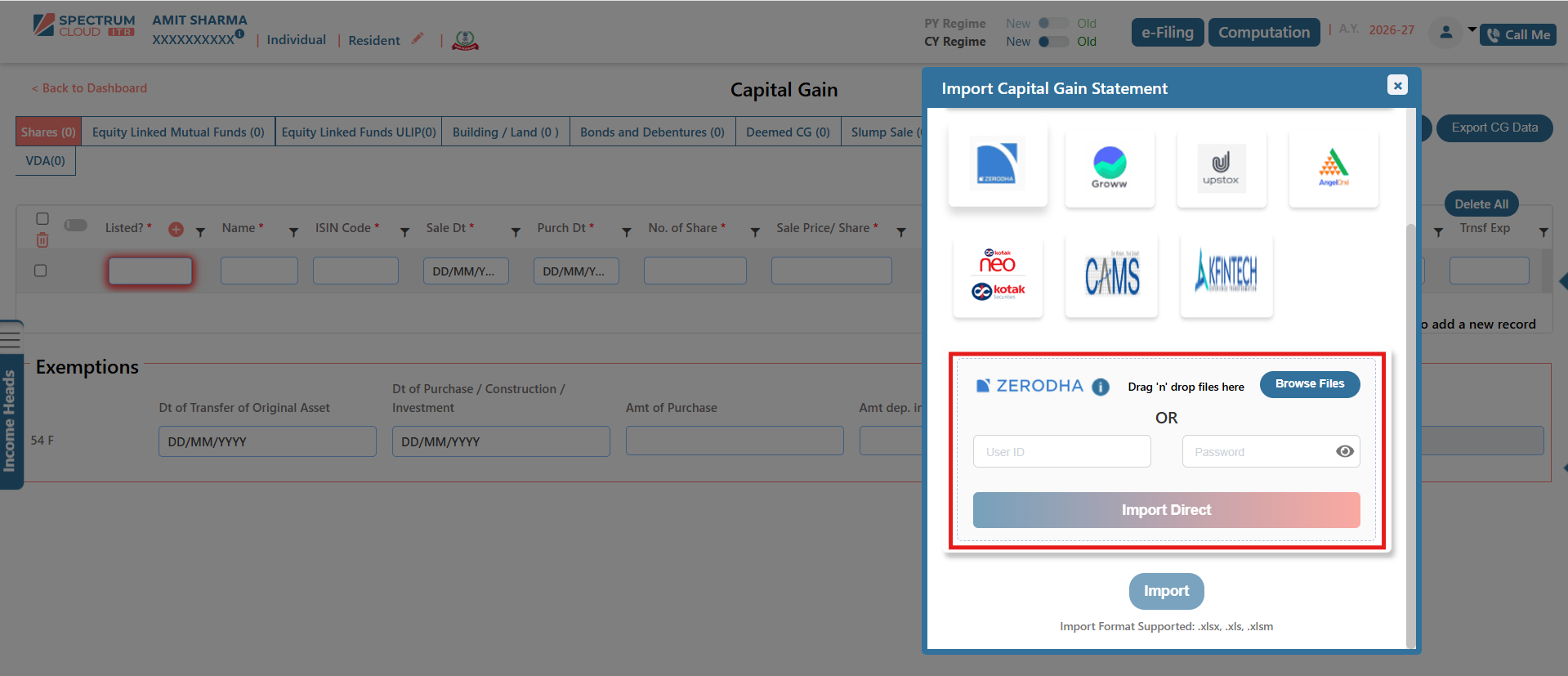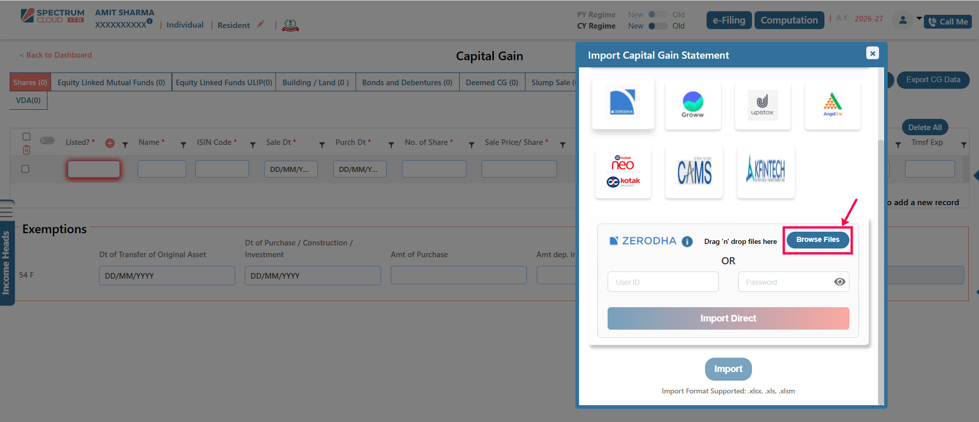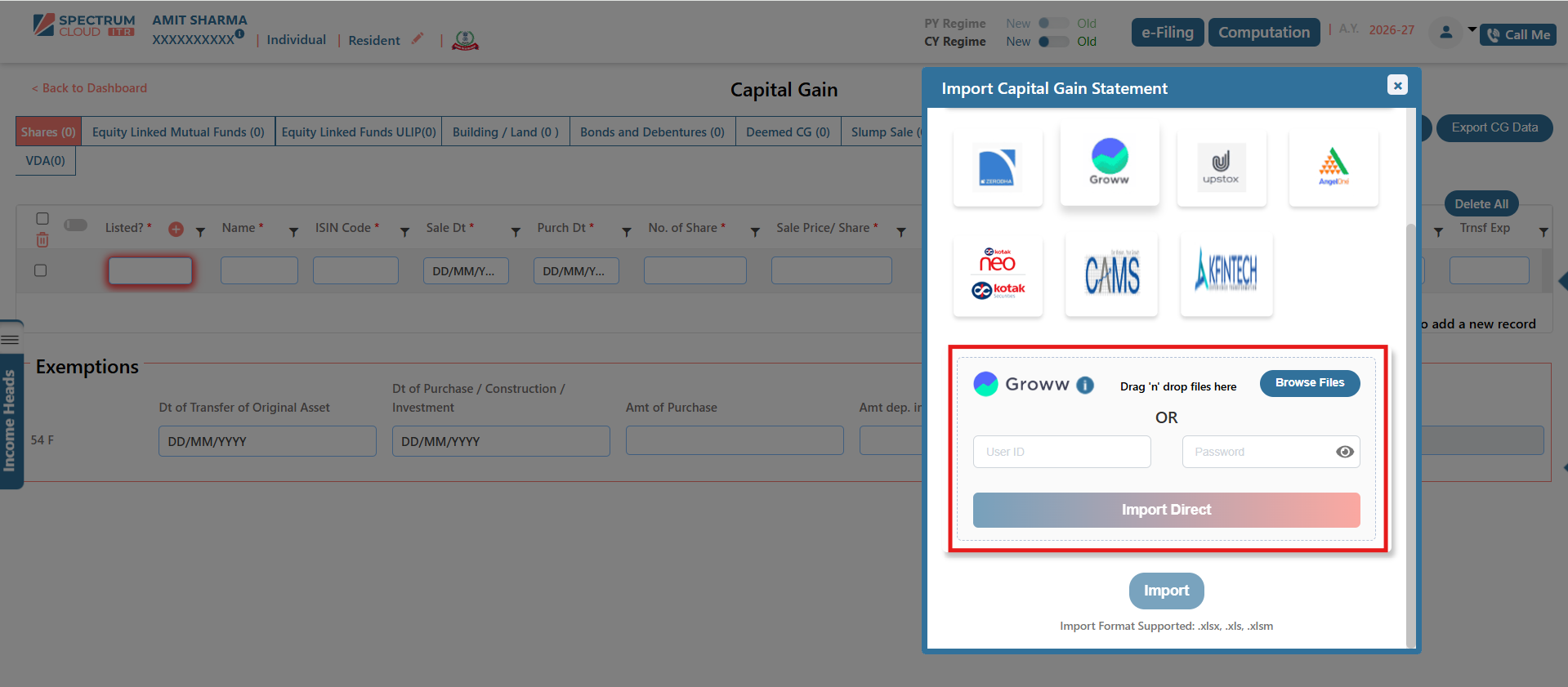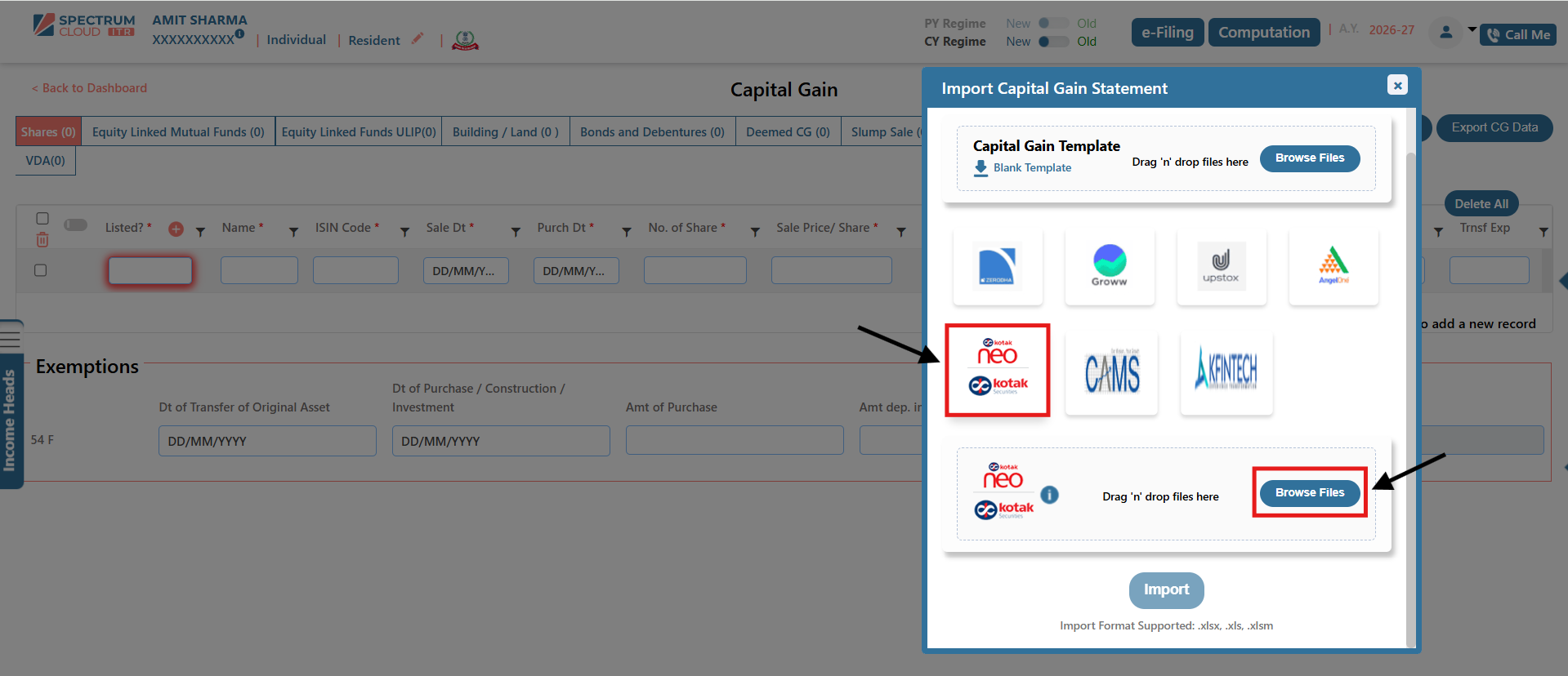 The Broker Template feature in Express ITR enables the structured and accurate import of Capital Gain data. Transactions imported through this functionality are automatically classified under the appropriate income heads, including Capital Gains and Business or Profession Income, wherever applicable.