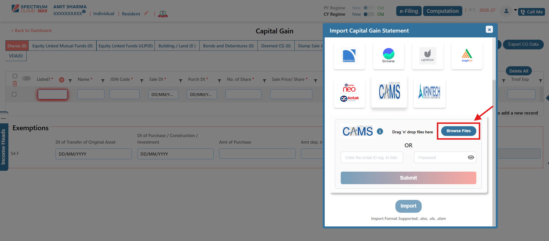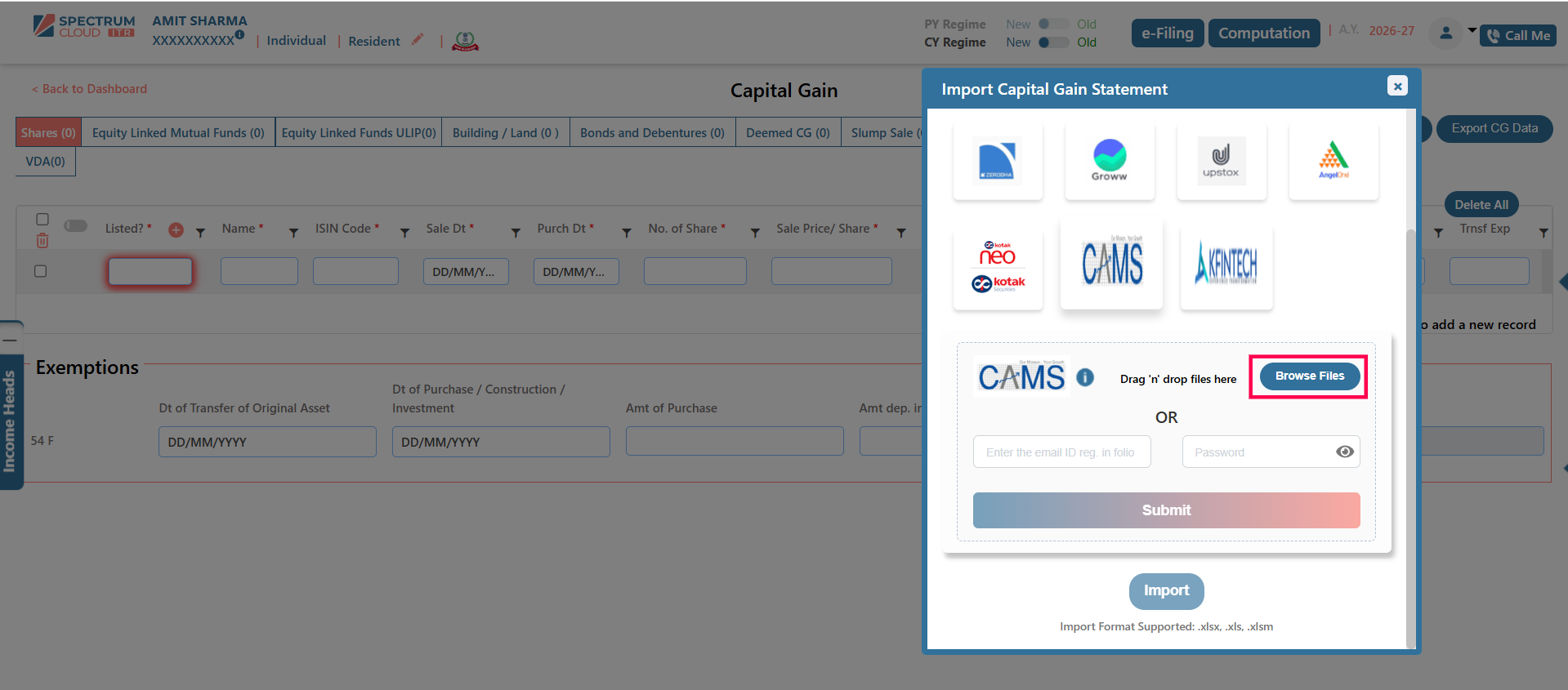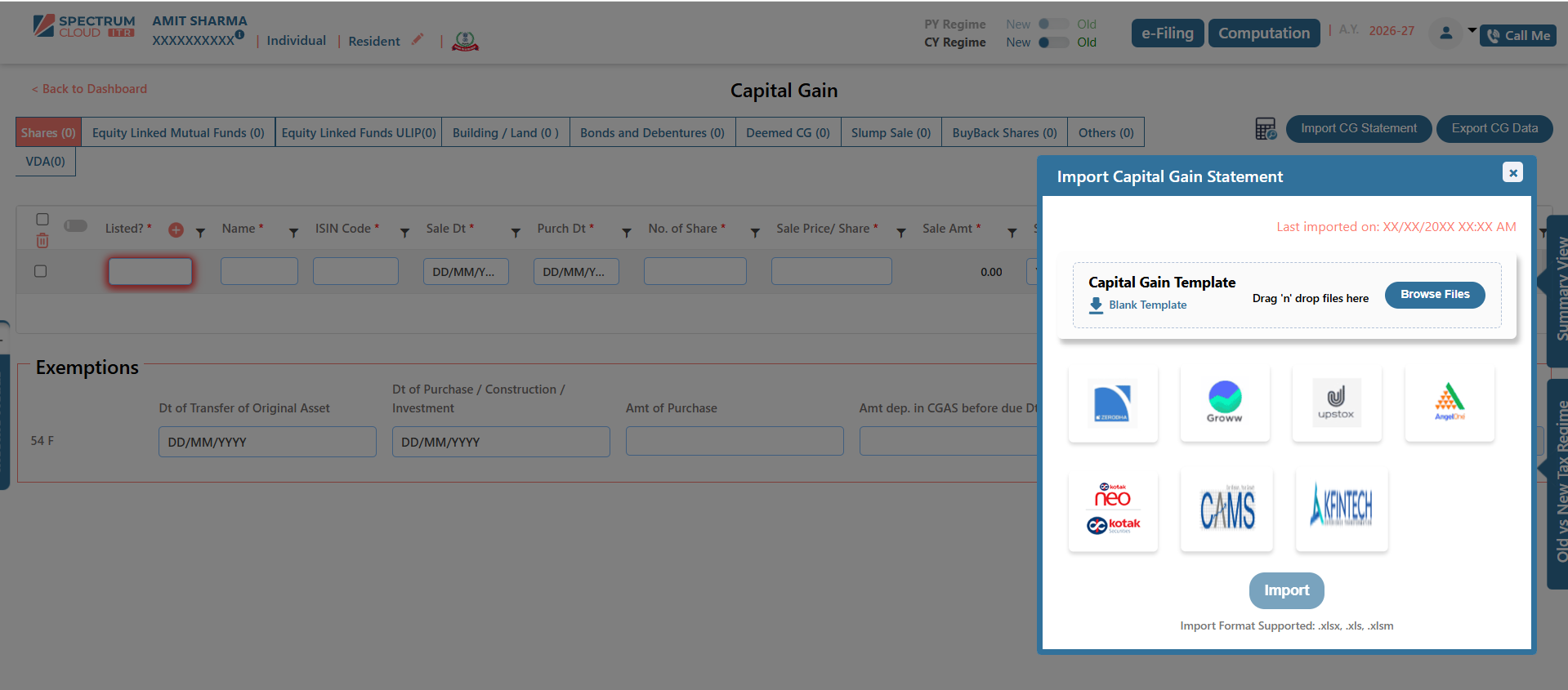 The Broker Template feature in Express ITR enables the structured and accurate import of Capital Gain data. Transactions imported through this functionality are automatically classified under the appropriate income heads, including Capital Gains and Business or Profession Income, wherever applicable.