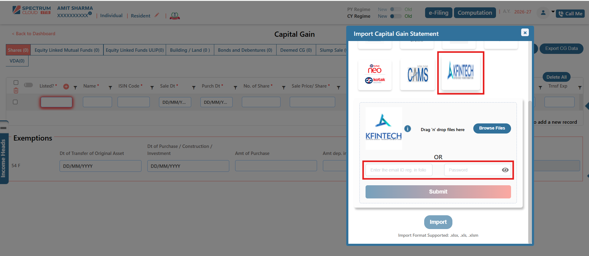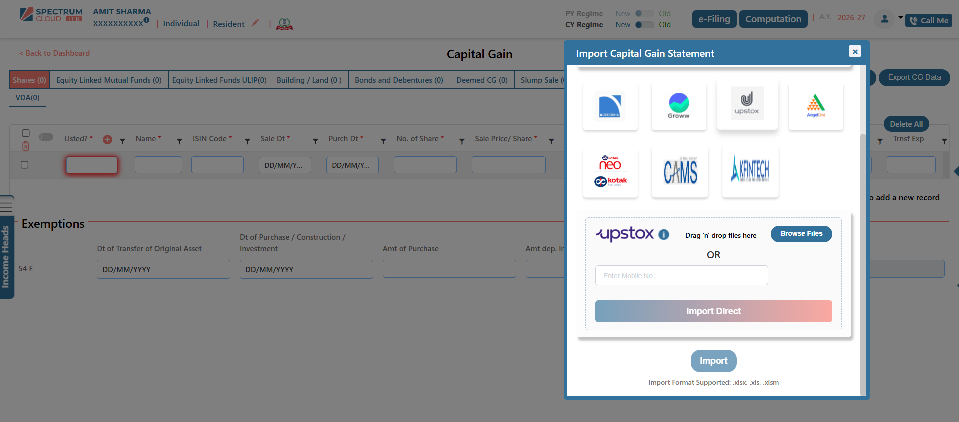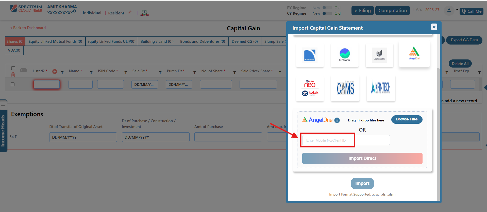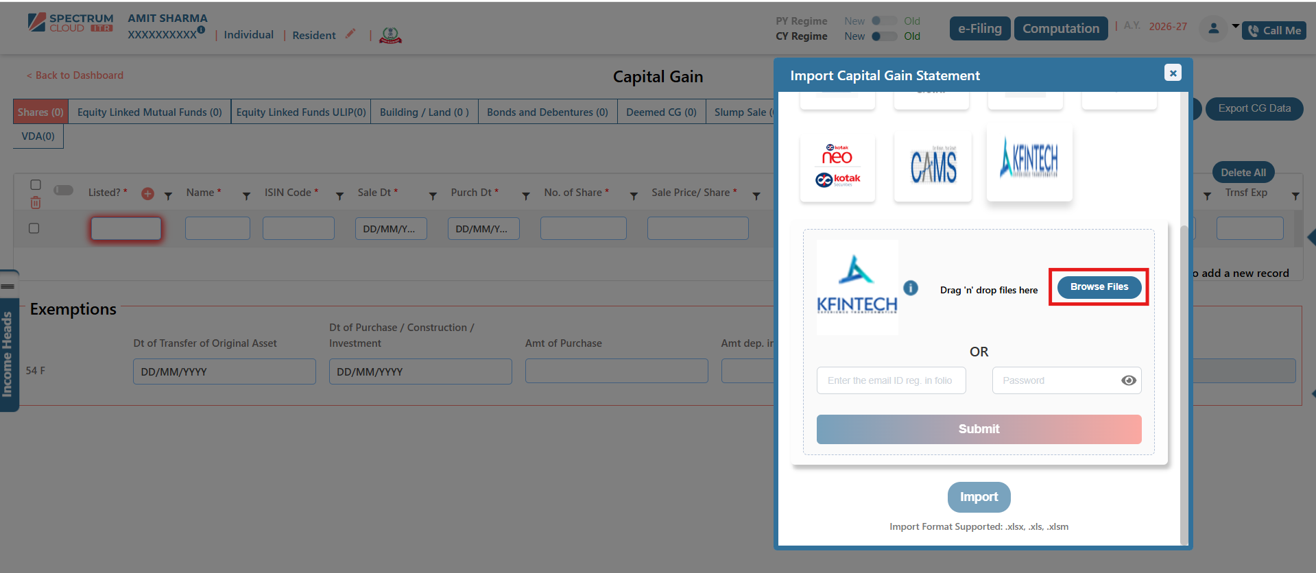 The Broker Template feature in Express ITR enables the structured and accurate import of Capital Gain data. Transactions imported through this functionality are automatically classified under the appropriate income heads, including Capital Gains and Business or Profession Income, wherever applicable.