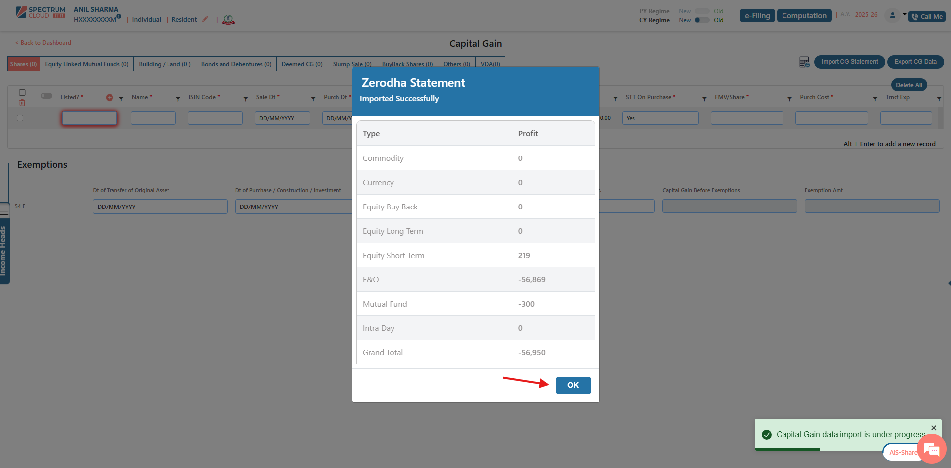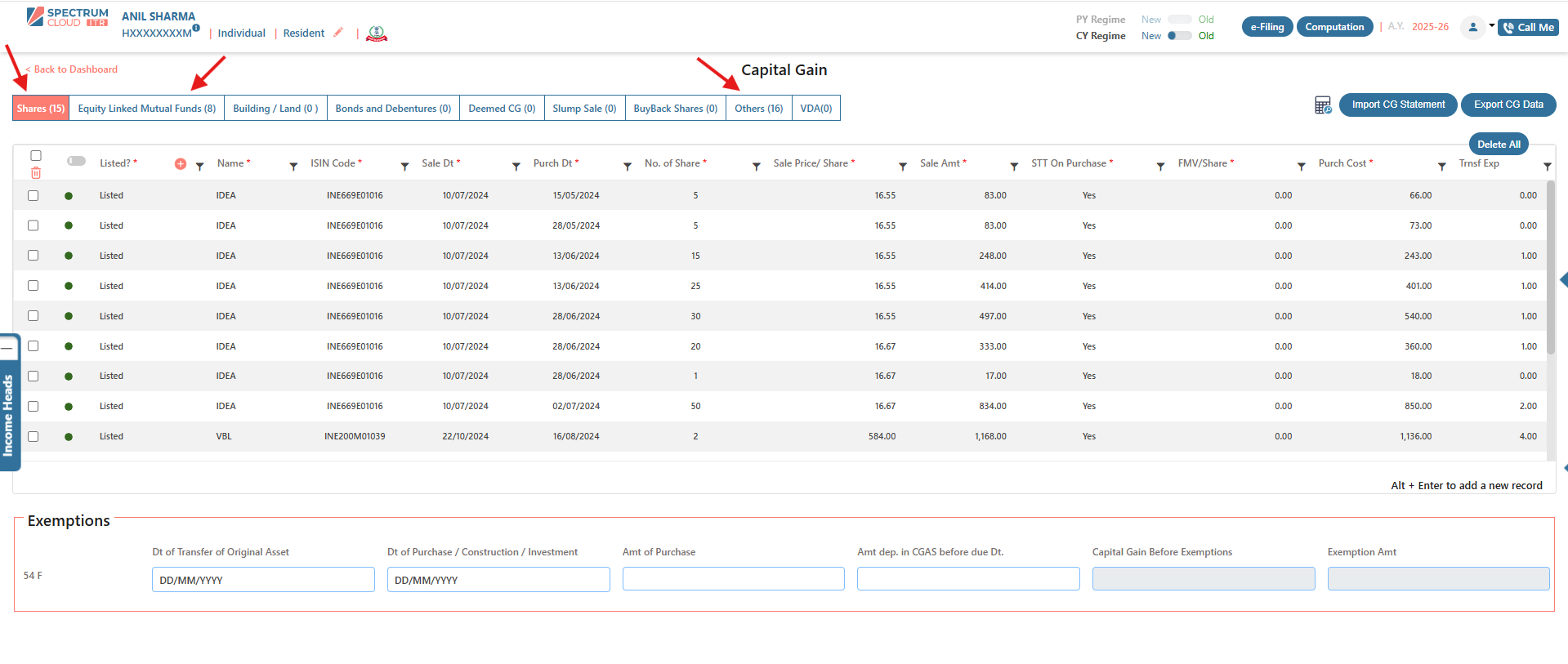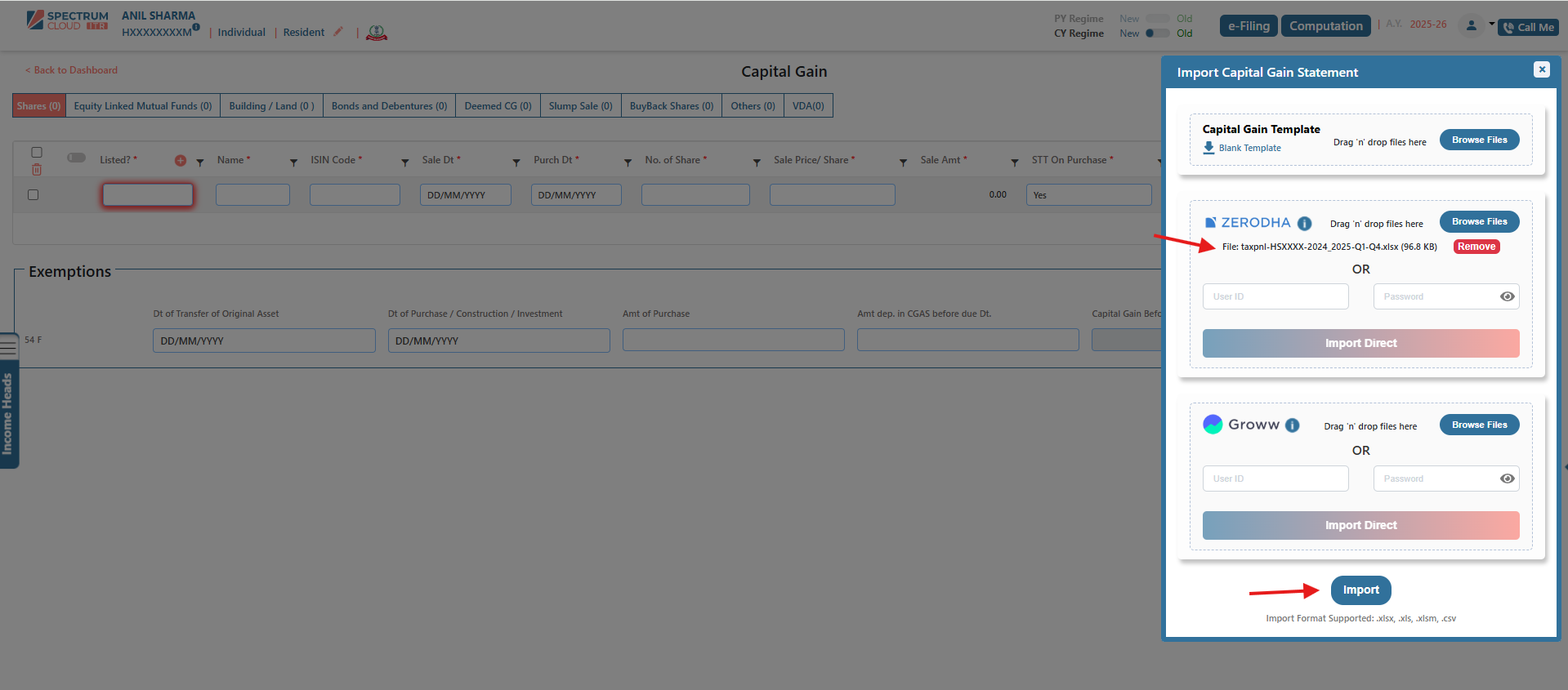 The Broker Template feature in ExpressITR enables users to efficiently import Capital Gain data with accuracy and consistency. All imported broker transactions are automatically mapped to their appropriate categories, such as: