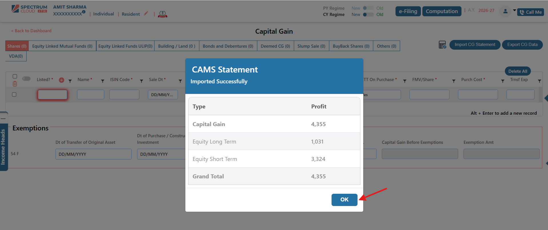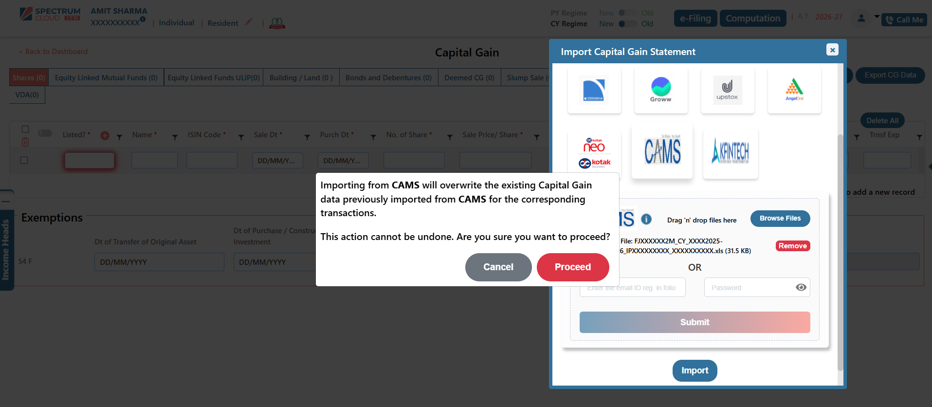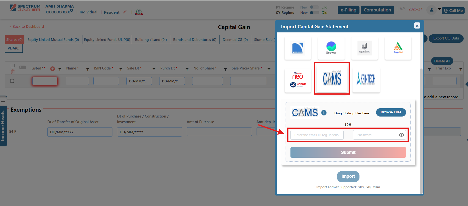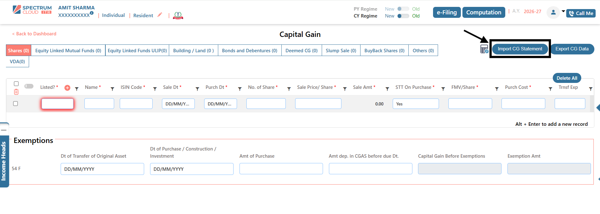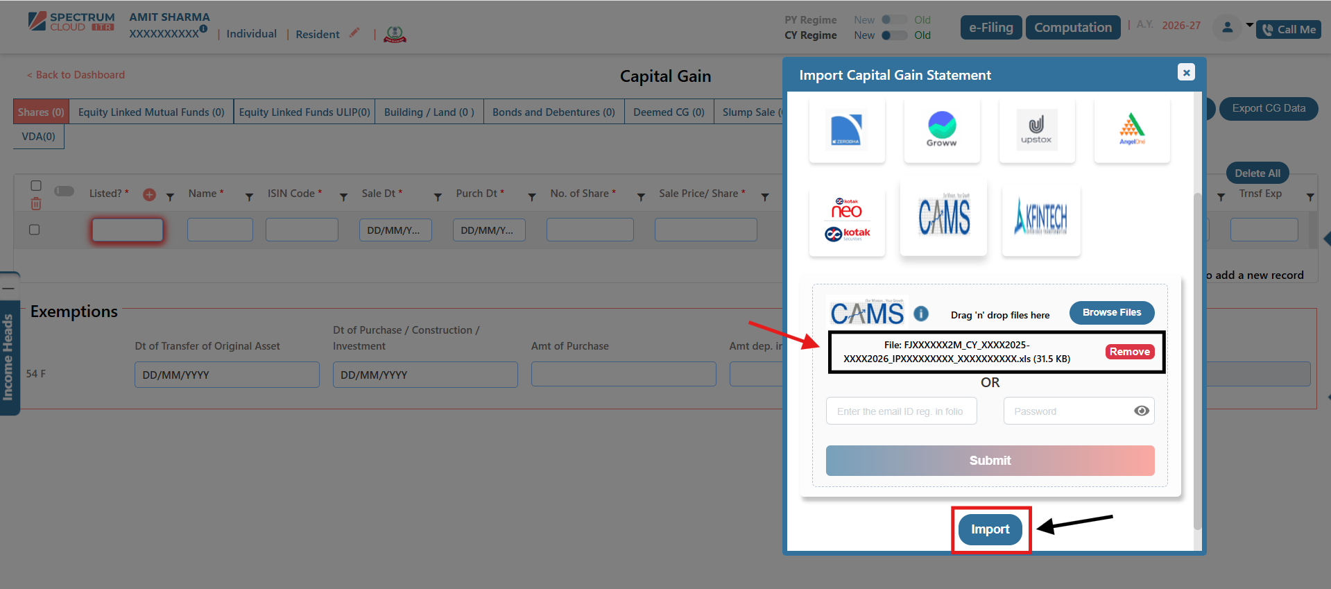 - Click on the Import CG Statement option.