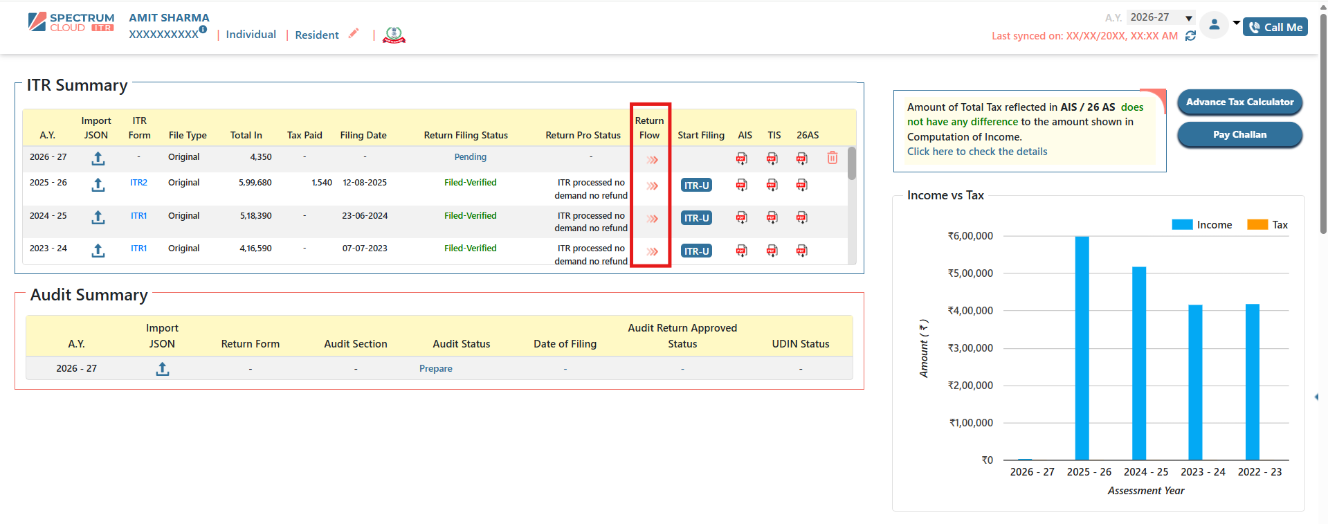 - Navigate to the ITR Summary section.