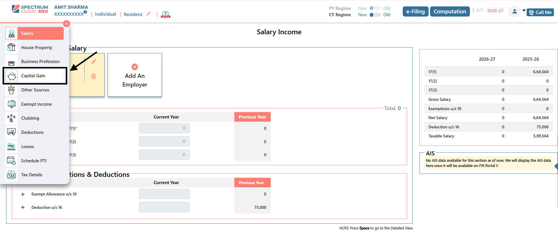 Step 2: Navigate to Capital Gain Section