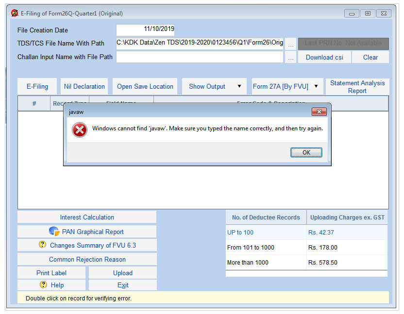 ISSUE IN TDS FVU Generation (24Q, 26Q, 27EQ, 27Q) as given in the below image