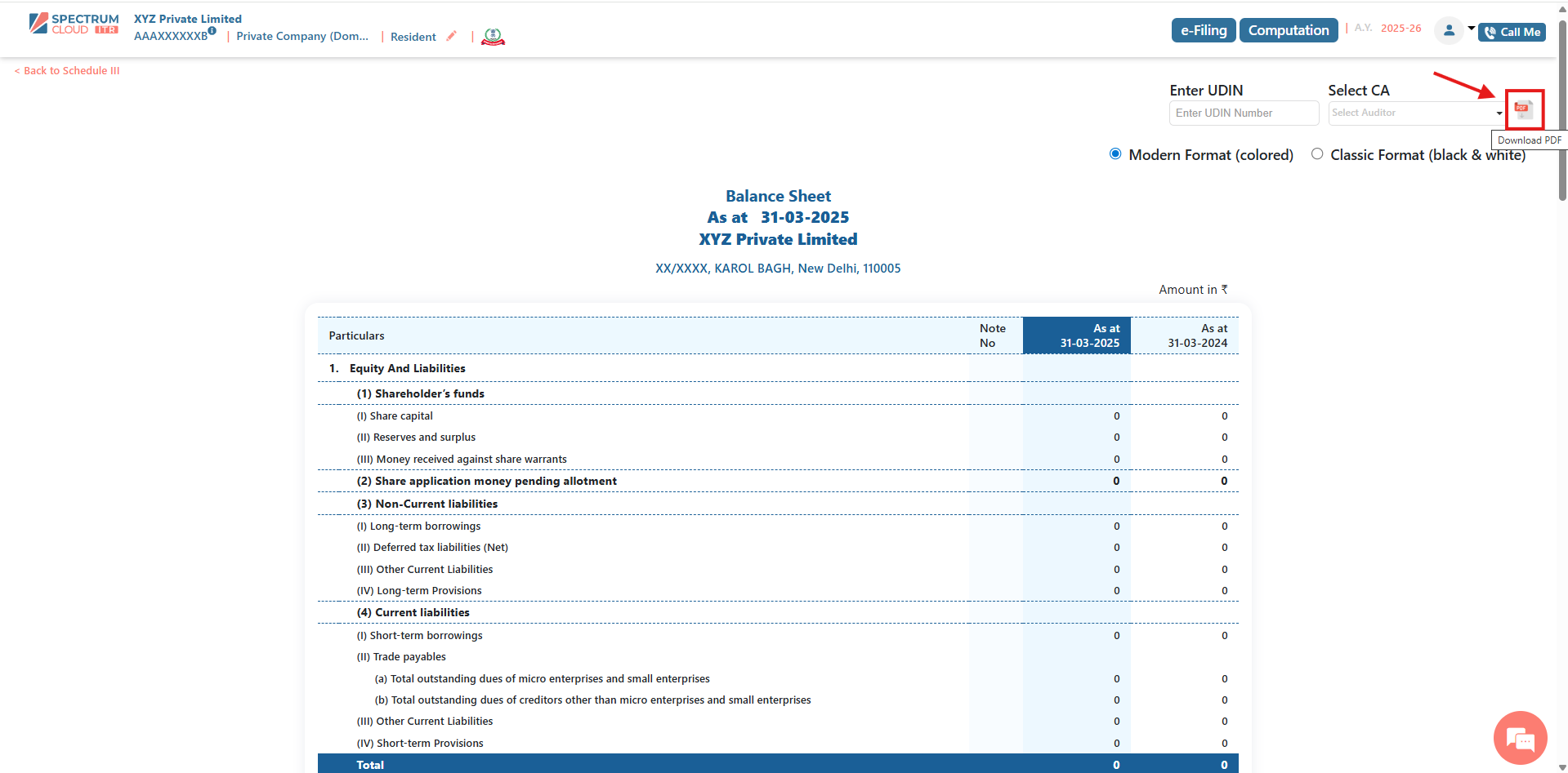 - The Schedule III document will be downloaded and saved in PDF format for your records, review, or submission.