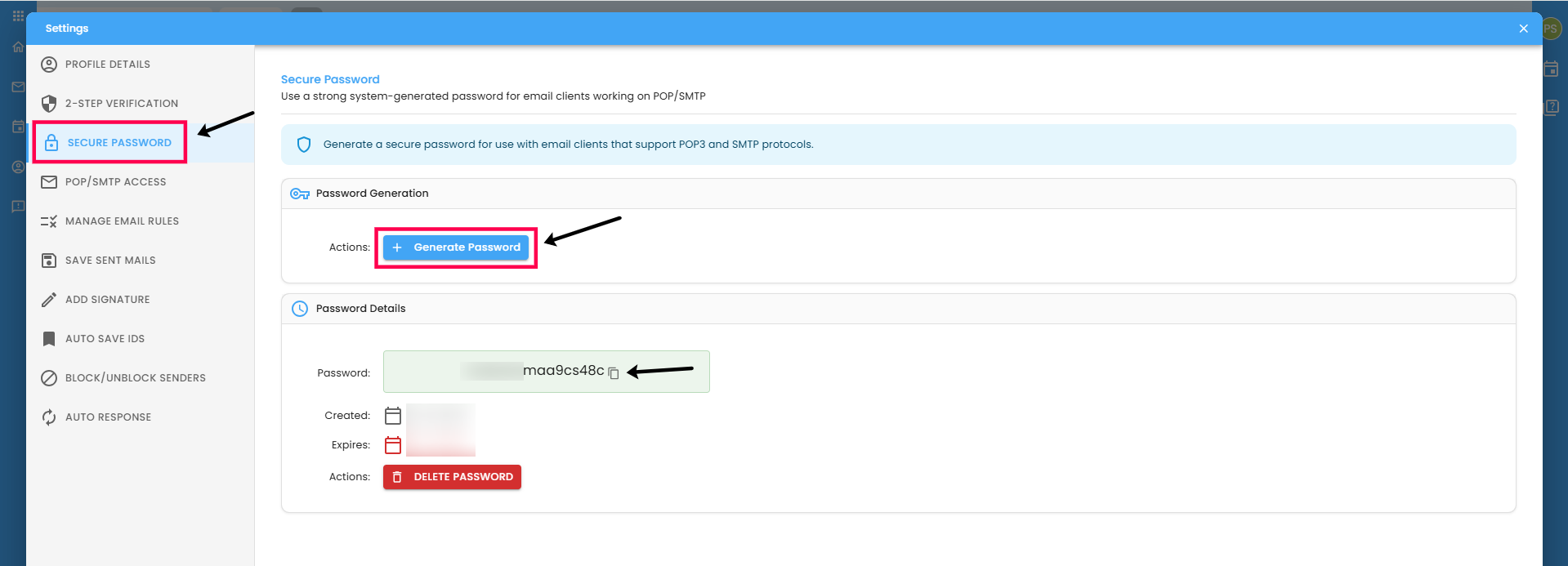 - Click on Generate Password.