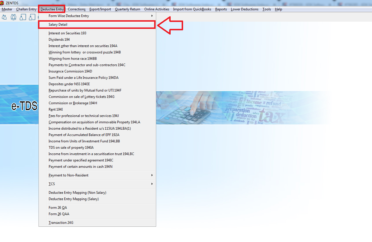 Salary Detail (Annexure II): Please note that Salary detail data is mandatory for e-filing of Fourth Quarter for all the employees. You can enter the salary Income in Deductee Transaction > Salary Detail (Annexure II) feature given in menu bar. Now, ...