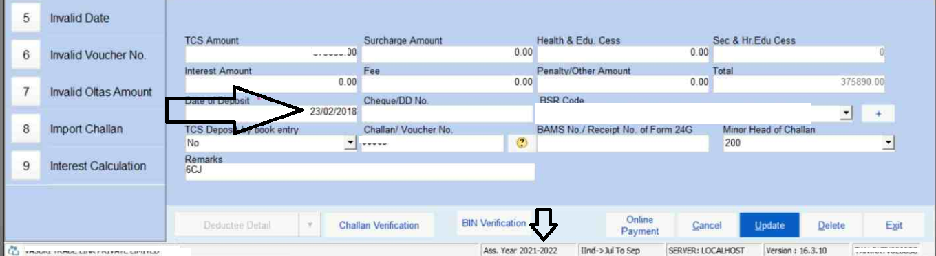 TDS validation error regarding challan entry