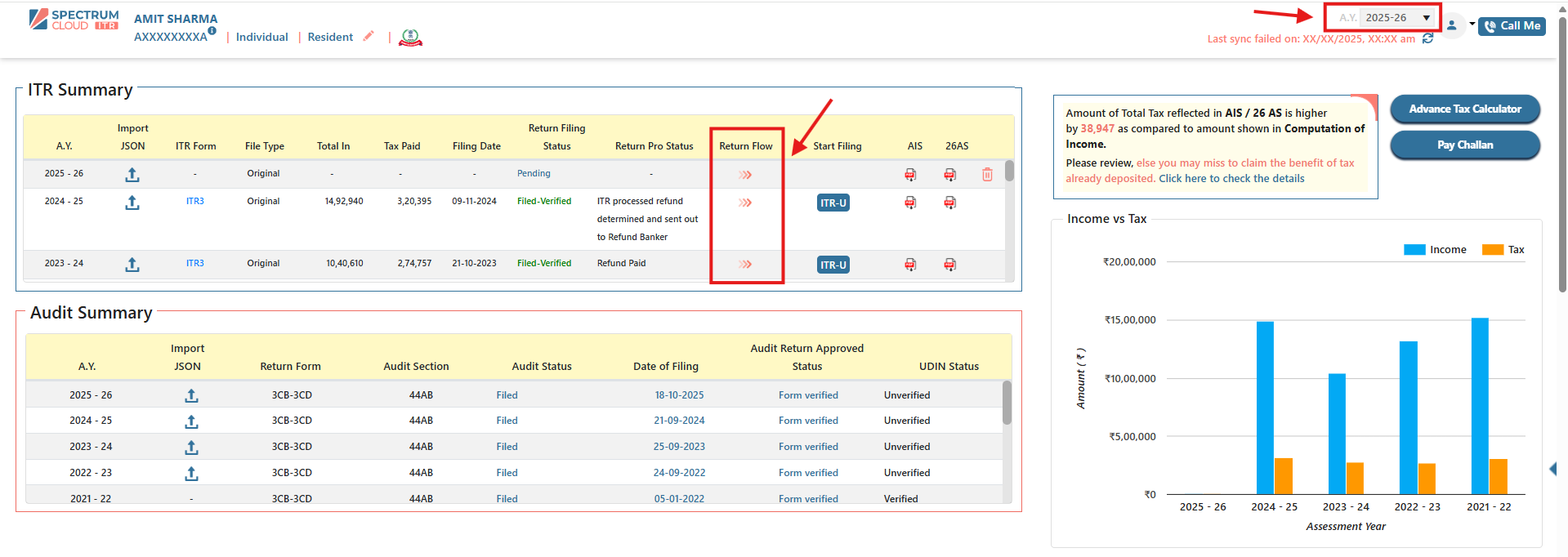 - Click on Return Flow to initiate the ITR filing process.