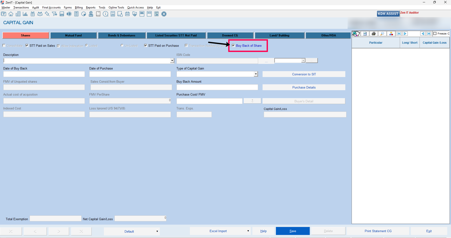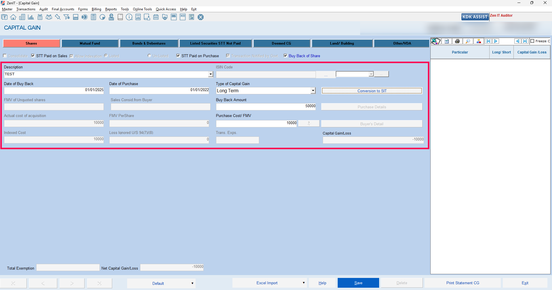 Following the above steps ensures a correct and seamless process for recording Buy Back of Shares under Section 2(22)(f) in Zen IT. This automation minimizes manual effort, reduces data entry errors, and ensures accurate reporting of both Capital Gains and deemed dividend components during income tax computation.
