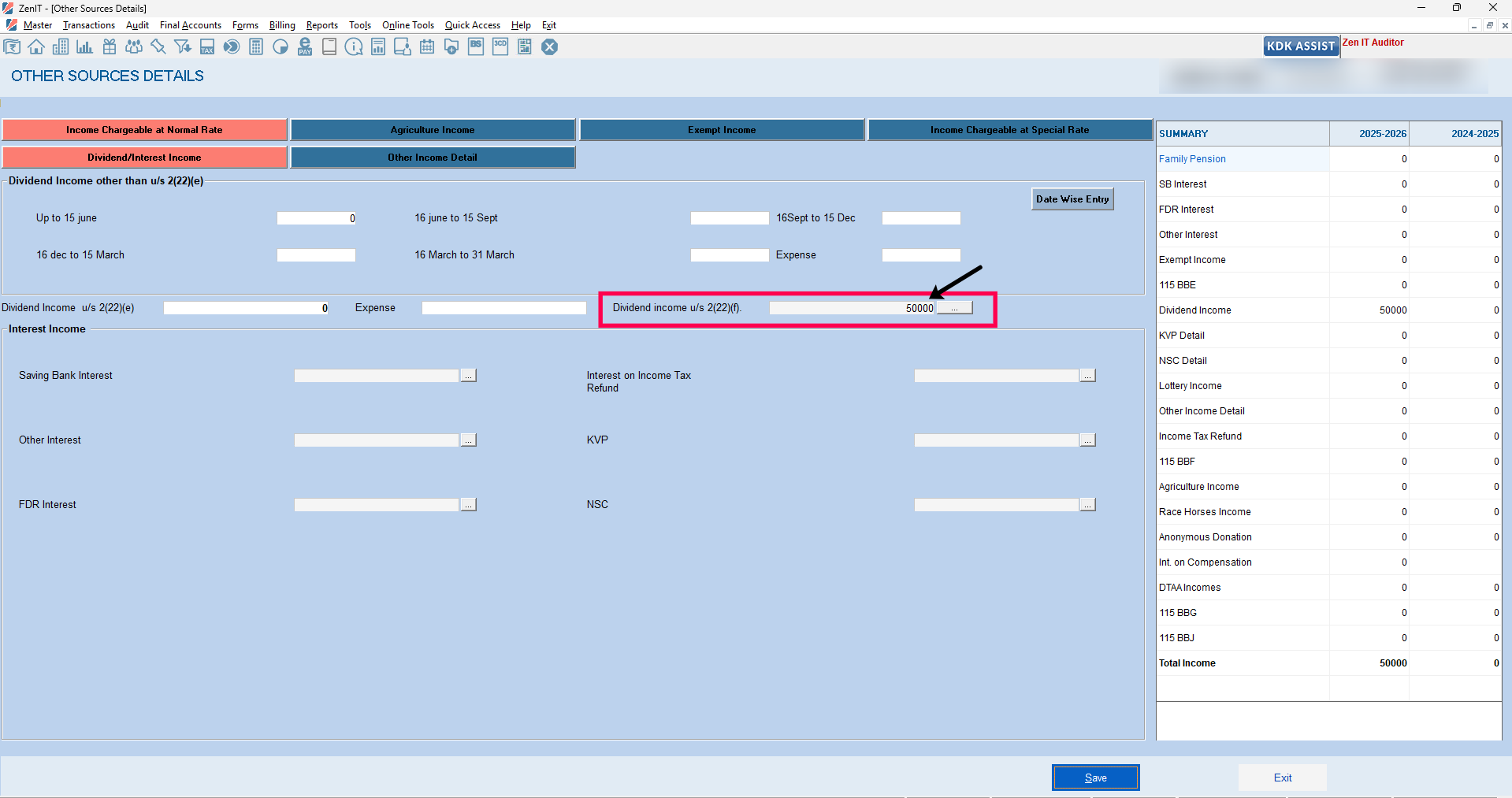 - Go to: Transactions → Other Sources → Dividend Income u/s 2(22)(f)
